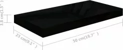 Furniture Limited – Wandschap Zwevend 50x23x3,8 Cm MDF Hoogglans Zwart