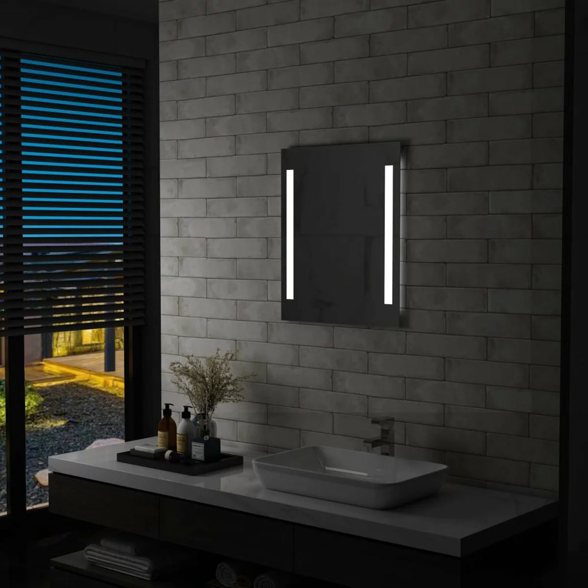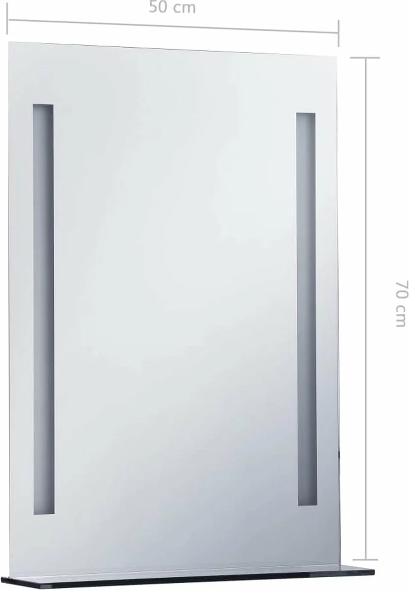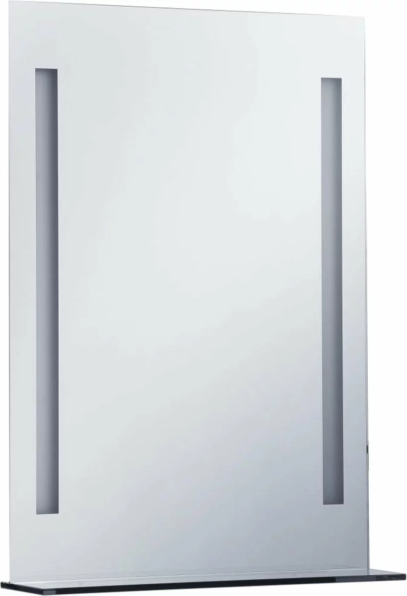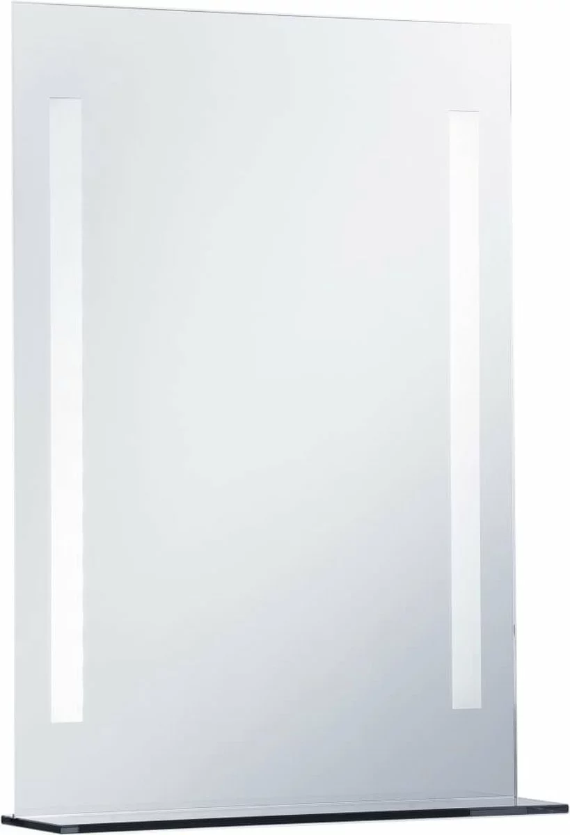 Onze LED-badkamerspiegel biedt heldere verlichting in combinatie met een verfijnde stijl en een functioneel ontwerp. Deze spiegel met twee LED-lijnen aan beide kanten creëert een sfeervolle ambiance in je badkamer. Met de energiebesparende LED’s kan je jezelf goed bekijken in de spiegel. Hij is dus ideaal voor het aanbrengen van make-up en het verzorgen van huid en haar. Hij is IP44 getest en is dus veilig om in een vochtige ruimte gebruikt te worden. Het glazen opbergschap biedt ruimte aan kleine spulletjes.