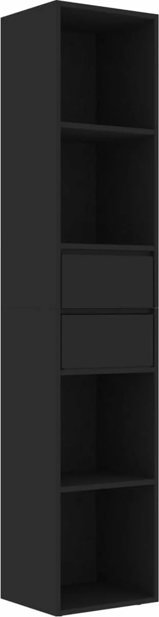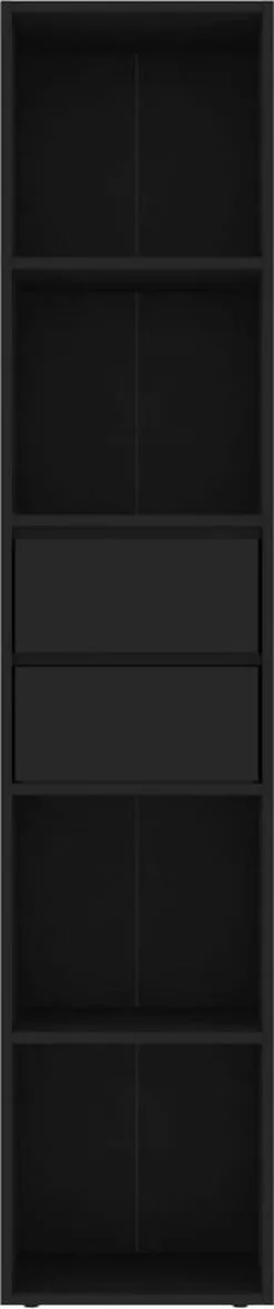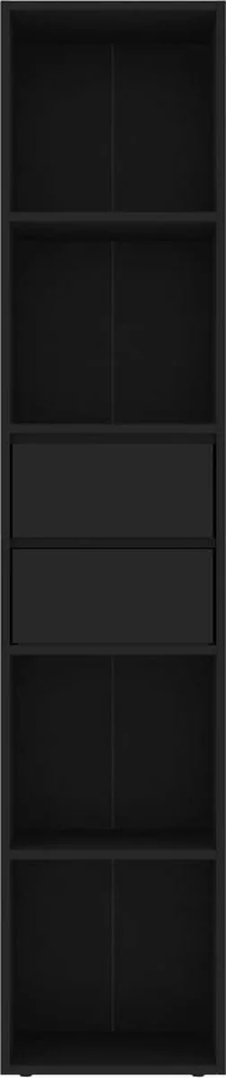 Deze kast is gemaakt van spaanplaat, waardoor hij stabiel en duurzaam is. Het meubel is ontworpen met 4 schappen en 2 lades en biedt dus voldoende ruimte om je tijdschriften en boeken georganiseerd en binnen handbereik te houden. Bovendien is de boekenkast gemakkelijk schoon te maken met een vochtige doek.