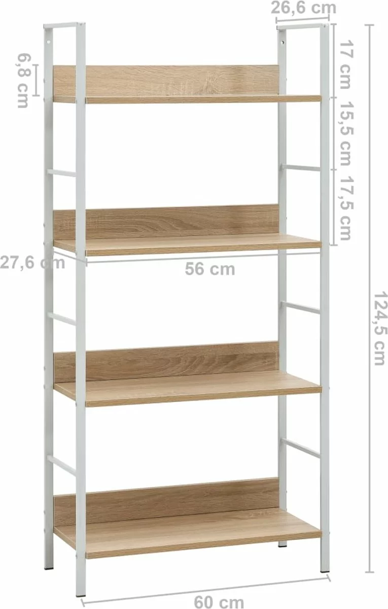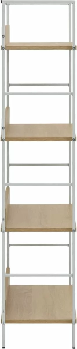 Het meubel is gemaakt van spaanplaat waardoor hij gemakkelijk schoon te maken is met een vochtige doek. De robuuste stalen structuur maakt de kast roestbestendig en draagt bij aan de industriële stijl. Het opbergrek heeft een compact ontwerp, waardoor het optimaal gebruik maakt van beperkte ruimte. Het heeft 4 lagen, waardoor je voldoende ruimte hebt voor het opbergen en plaatsen van je boekencollectie, bloemen, cd’s, dvd’s en andere decoratieve spullen.