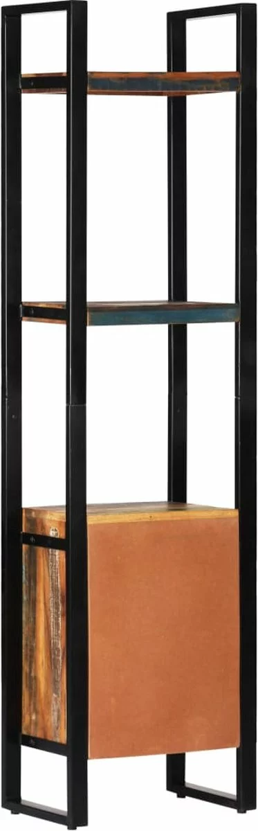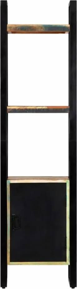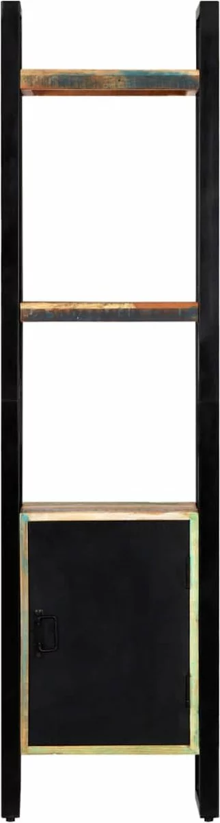 Deze boekenkast is gemaakt van massief gerecycled hout dat afkomstig is van balken, vloeren en steunbalken van oude gebouwen die zijn gesloopt. Het kan dus bestaan uit verschillende houtsoorten, zoals grenen, teak, beuken, eiken, ceder, mangohout en acacia. Dit betekent dat het teruggewonnen hout de kenmerken van deze verschillende houtsoorten behoudt. Gerecycled hout is al verouderd, verweerd en gedroogd, dus het krimpt en buigt niet. Elke stap van het proces wordt met de grootste zorg uitgevoerd, of het nu polijsten, schilderen of lakken is. Het uitmuntende vakmanschap en de sierlijke houtnerven maken elk meubelstuk opvallend en net iets anders dan de rest. Daarnaast heeft deze kast 1 compartiment met deur en 3 schappen waardoor het meubel een ideale opbergoplossing is voor je boeken, tijdschriften, documenten en decoratieve voorwerpen, zoals fotolijstjes en verzamelingen. Montage is eenvoudig.