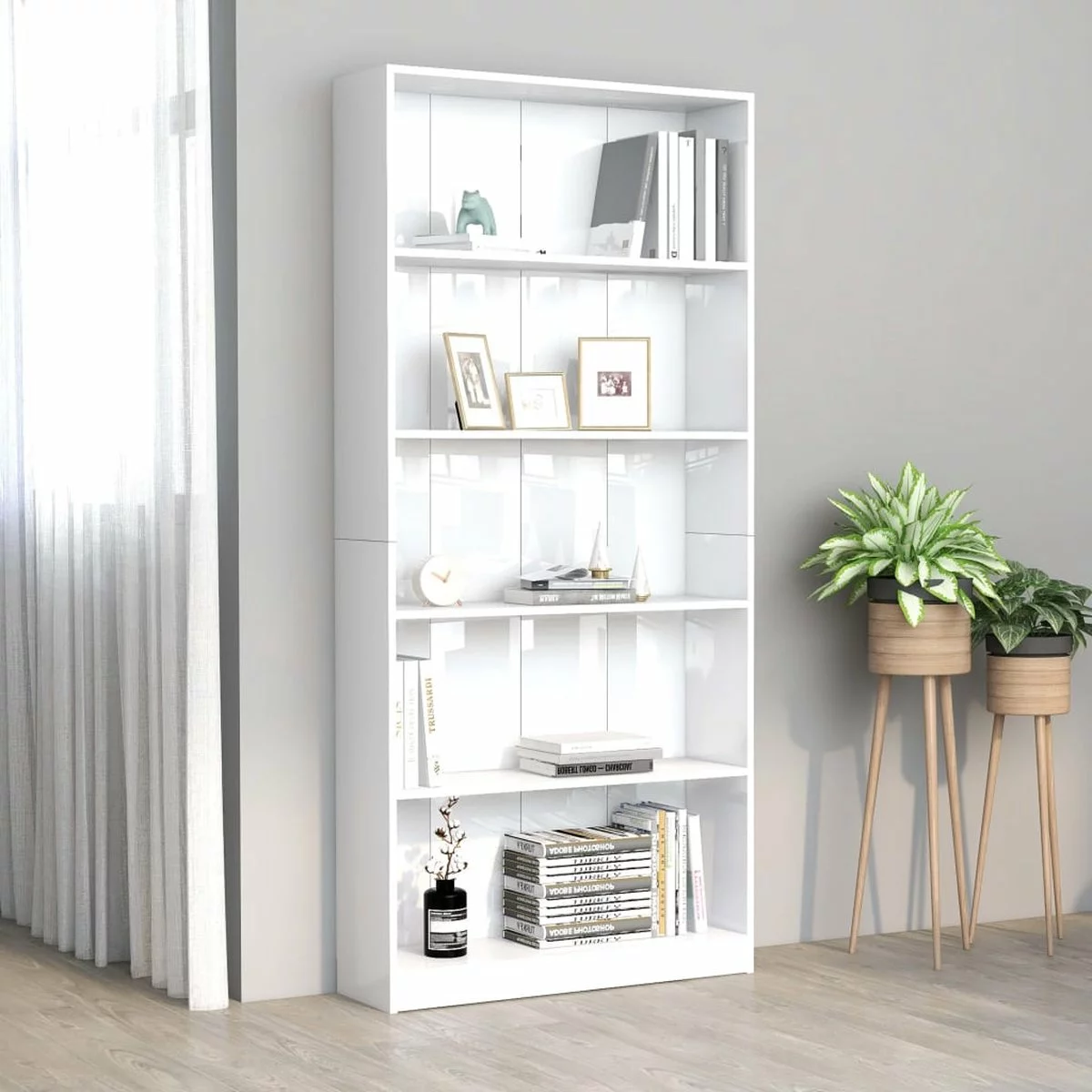 De kast is gemaakt van bewerkt hout waardoor hij stevig en duurzaam is. De boekenkast heeft 5 ruime vakken en biedt voldoende ruimte om tijdschriften, boeken, dvd’s, multimedia-apparaten en decoratieve spullen goed georganiseerd en binnen handbereik te houden. Bovendien is dit meubel zeer veelzijdig omdat het ook een perfecte opbergoplossing is voor in je hal of andere woonruimte.