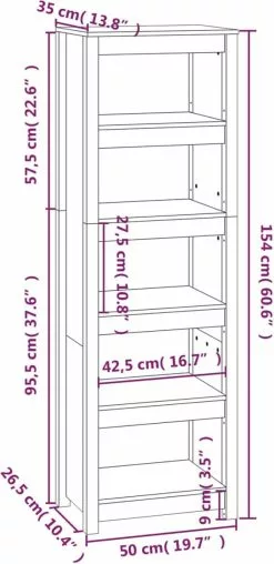- Afmetingen: 50x35x154 cm (B x D x H)