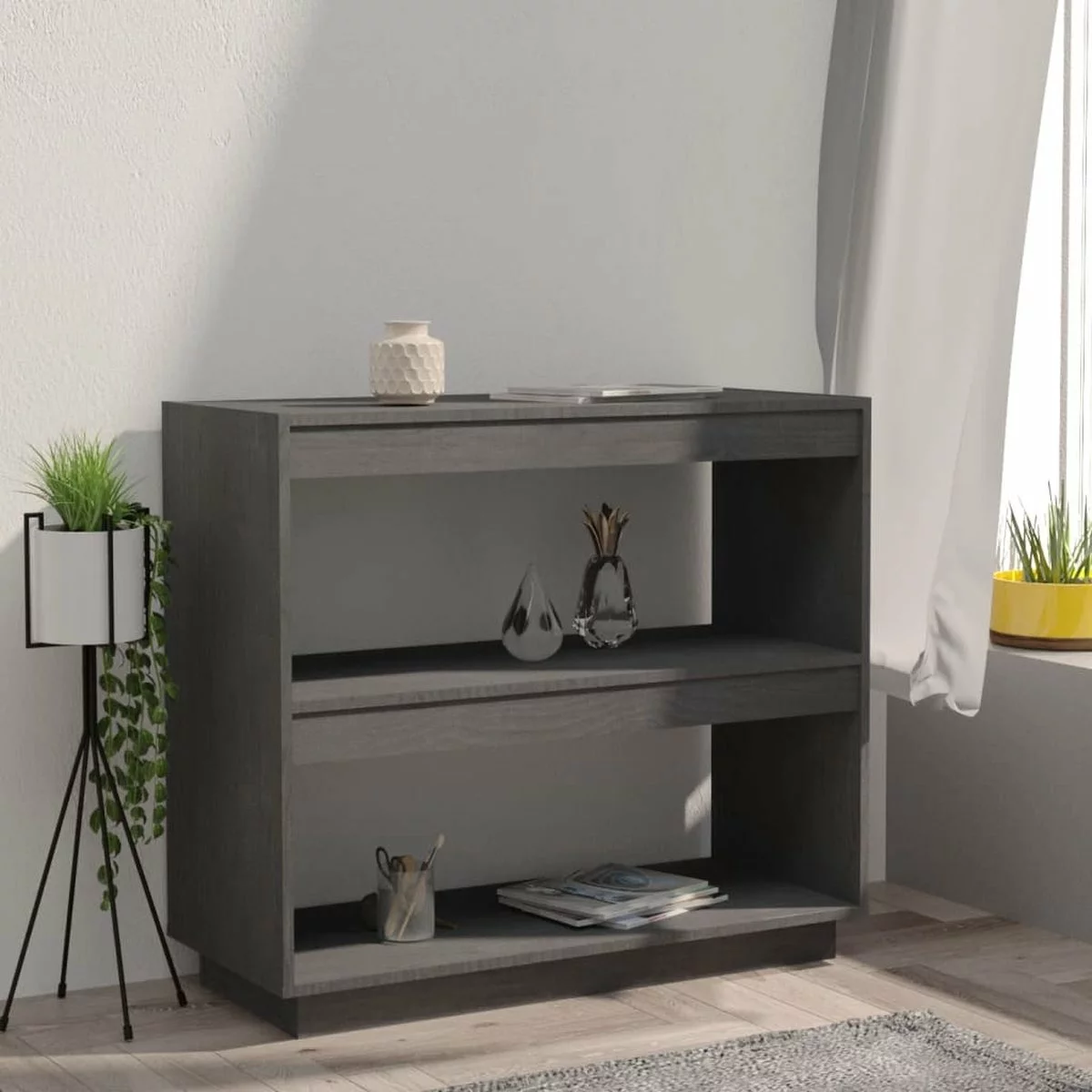 De boekenkast is van massief grenenhout gemaakt, waardoor hij stevig en stabiel is. De boekenkast biedt voldoende ruimte om je tijdschriften, boeken, DVD’s, multimedia-apparaten en andere decoratieve spullen geordend en binnen handbereik te houden. Het boekenrek is eenvoudig schoon te maken met een vochtige doek.