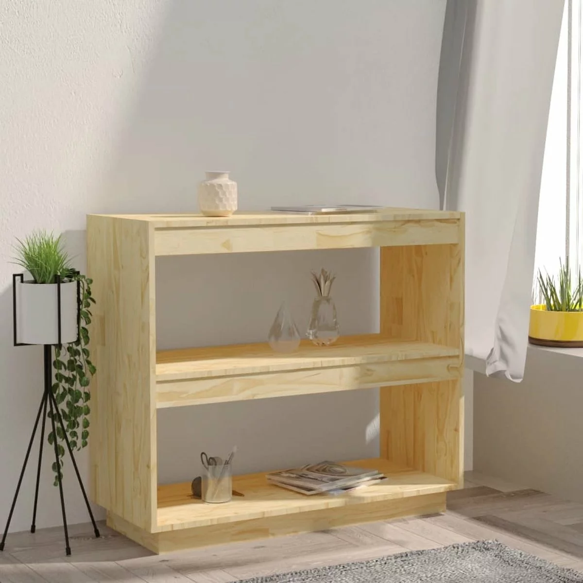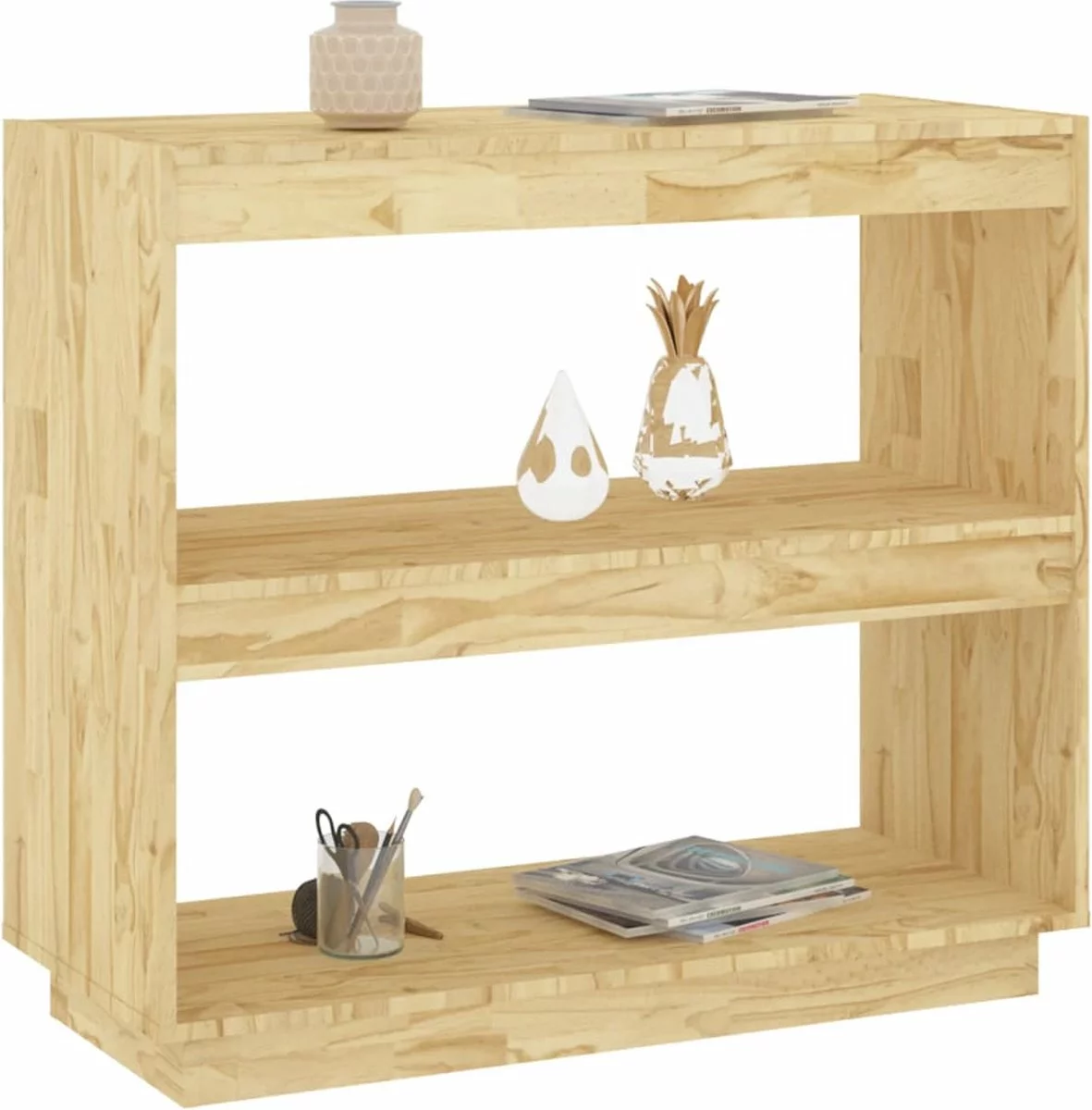 De boekenkast is van massief grenenhout gemaakt, waardoor hij stevig en stabiel is. De boekenkast biedt voldoende ruimte om je tijdschriften, boeken, DVD’s, multimedia-apparaten en andere decoratieve spullen geordend en binnen handbereik te houden. Het boekenrek is eenvoudig schoon te maken met een vochtige doek.