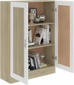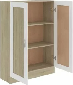 De kast is gemaakt van hoogwaardig spaanplaat waardoor hij stevig en duurzaam is. De boekenkast is ontworpen met 3 ruime vakken en 2 deuren. Hij biedt voldoende opbergruimte om je tijdschriften, boeken, dvd’s, multimedia-apparaten en decoratieve spullen geordend en binnen handbereik te houden. Bovendien is dit meubel zeer veelzijdig omdat het ook een perfecte opbergoplossing is voor in elke andere woonruimte. Deze boekenkast is eenvoudig te reinigen met een vochtige doek.