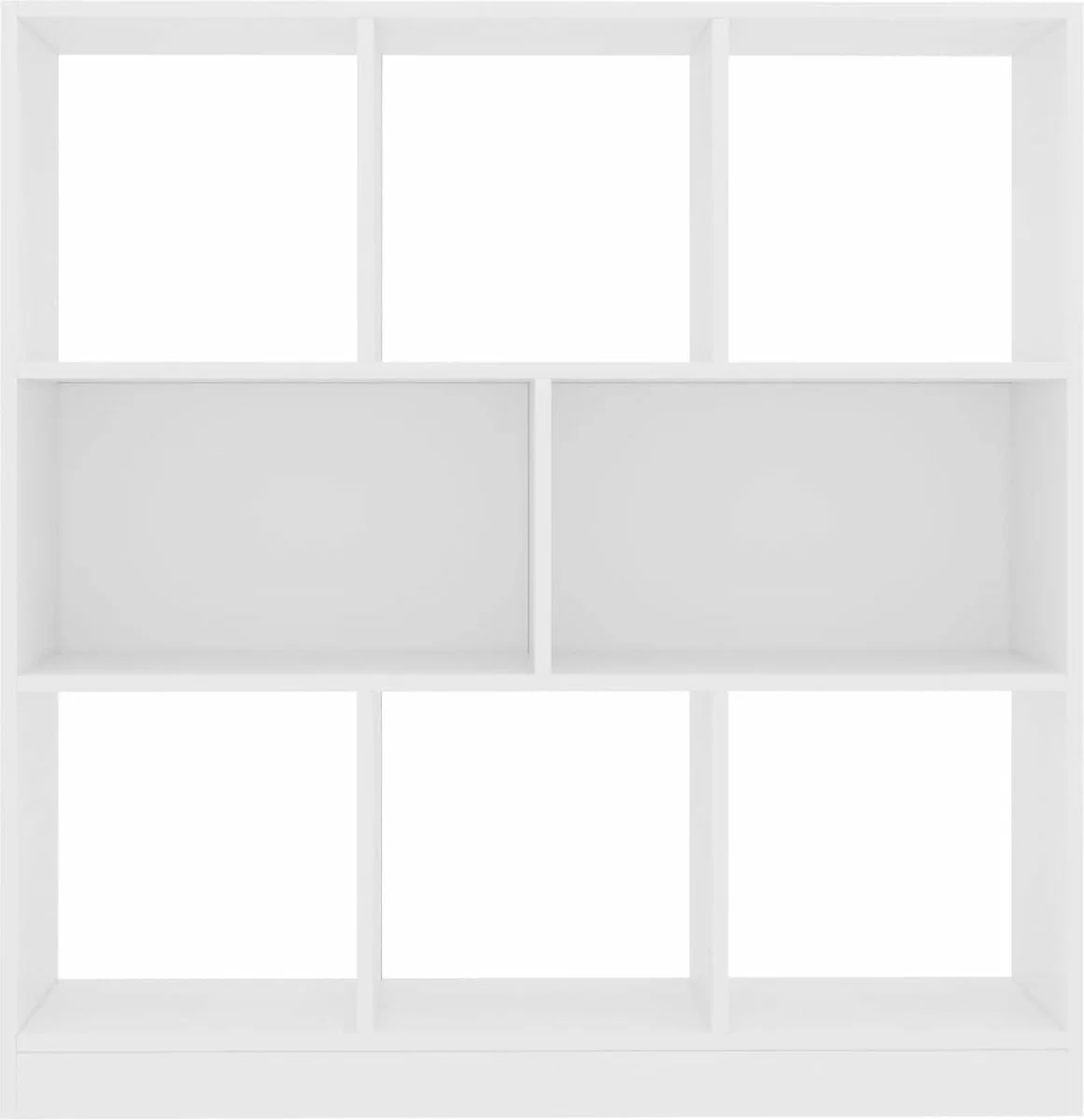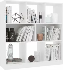 De kast is gemaakt van bewerkt hout waardoor hij stevig en duurzaam is. De boekenkast heeft 8 ruime vakken en biedt voldoende ruimte om tijdschriften, boeken, dvd’s, multimedia-apparaten en decoratieve spullen goed georganiseerd en binnen handbereik te houden.