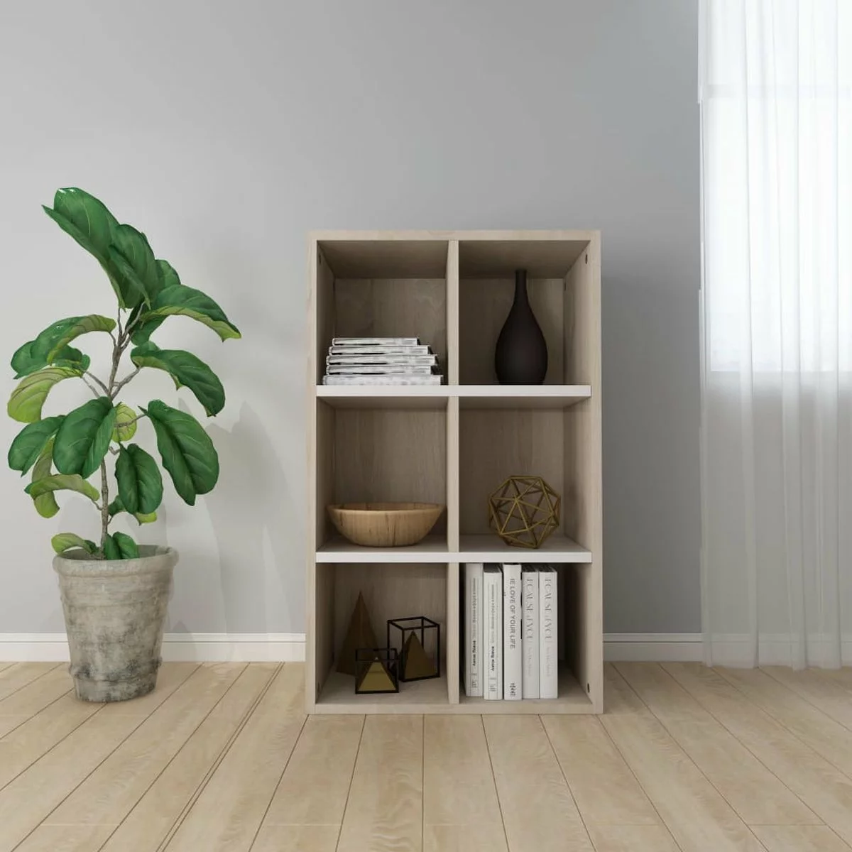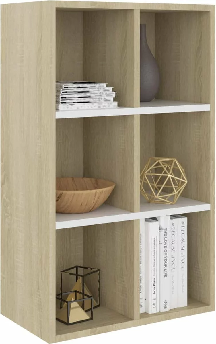 De kast is gemaakt van bewerkt hout waardoor hij stevig en duurzaam is. De boekenkast is ontworpen met 6 vakken en biedt voldoende ruimte om je tijdschriften, boeken, dvd’s en multimedia-apparaten geordend en binnen handbereik op te bergen. Bovendien is dit meubel zeer veelzijdig omdat het horizontaal geplaatst kan worden om als televisiemeubel gebruikt te worden. Het is dus een perfecte keuze voor je woonruimte.
