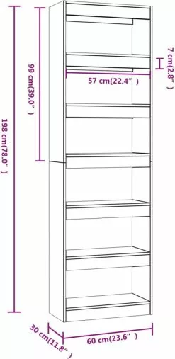 - Afmetingen: 60 x 30 x 198 cm (B x D x H)