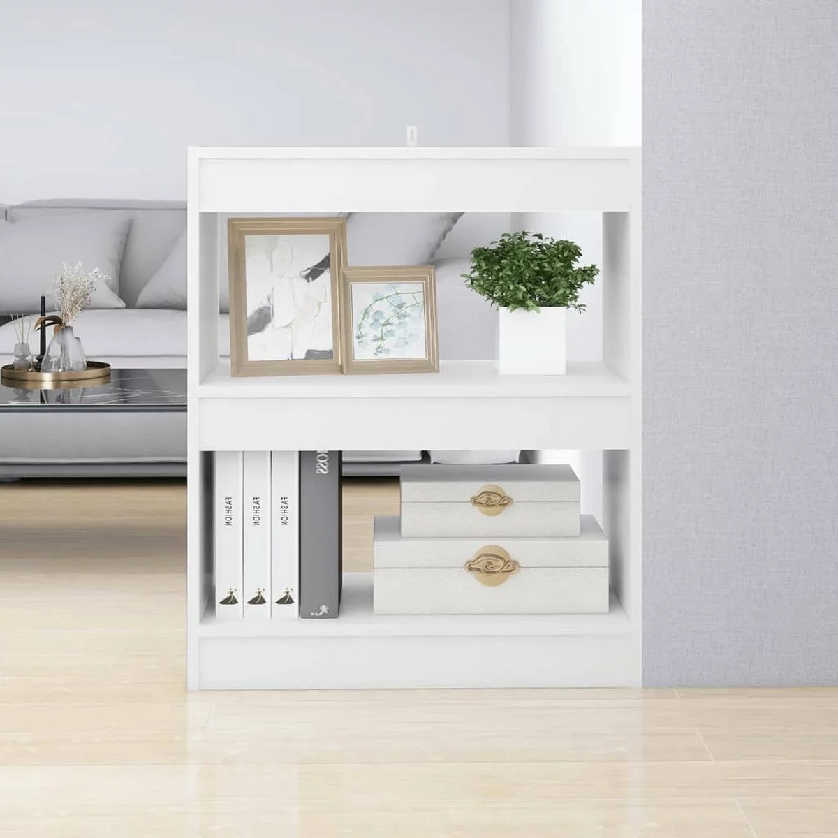 De kast is stevig en stabiel. Hij biedt voldoende ruimte om je tijdschriften, boeken, dvd’s, multimedia-apparaten en decoratieve spullen op te bergen. Het meubel is zeer veelzijdig omdat het ook als kamerscherm gebruikt kan worden. De opbergkast is eenvoudig te reinigen met een vochtige doek.