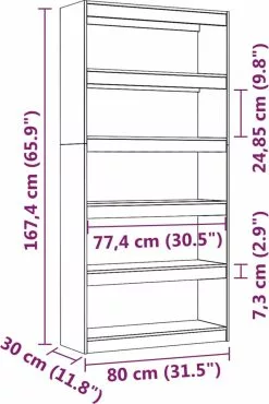 De kast is gemaakt van massief grenenhout, waardoor hij stevig en stabiel is. De opbergkast is ontworpen met 5 ruime vakken. Hij biedt voldoende opbergruimte om je tijdschriften, boeken, dvd’s, multimedia-apparaten en decoratieve spullen geordend en binnen handbereik te houden. Bovendien is dit meubel zeer veelzijdig omdat het ook als scheidingswand gebruikt kan worden. Hij is dus een perfecte keuze voor je hal of andere woonruimte. De boekenkast is met een vochtige doek gemakkelijk schoon te maken.