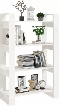 Deze veelzijdige, houten boekenkast is een decoratieve, maar praktische aanvulling op je interieur. Hij is ook als kamerscherm te gebruiken.