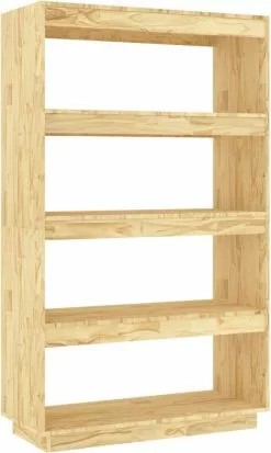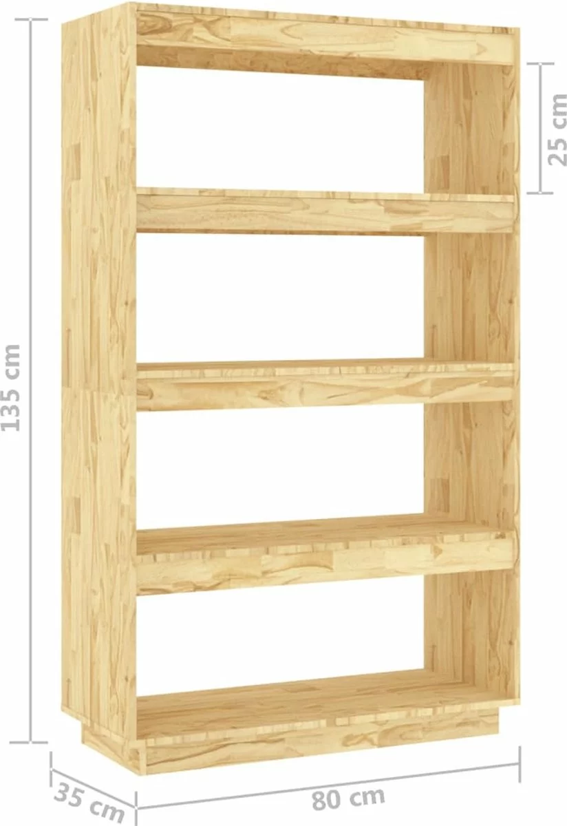 De kast is gemaakt van massief grenenhout, waardoor hij stevig en stabiel is. Hij biedt voldoende opbergruimte om je tijdschriften, boeken, dvd’s, multimedia-apparaten en decoratieve spullen geordend en binnen handbereik te houden. Bovendien is dit meubel zeer veelzijdig omdat het ook als scheidingswand gebruikt kan worden. Hij is dus een perfecte keuze voor je hal of andere woonruimte. De boekenkast is met een vochtige doek gemakkelijk schoon te maken.