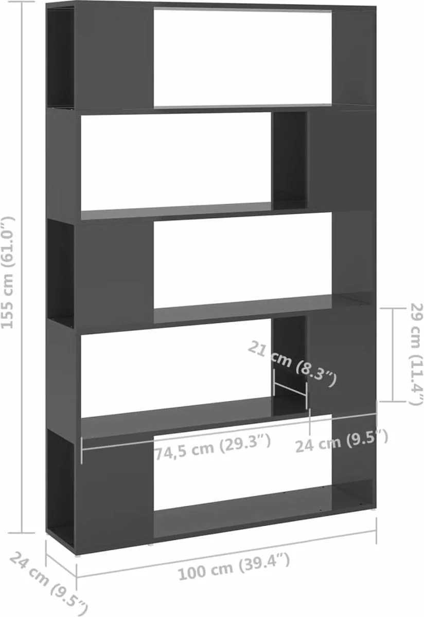 De constructie van dit meubel maakt het stevig en duurzaam. De kamerverdeler heeft 5 ruime vakken, die voldoende ruimte bieden om tijdschriften, boeken, dvd’s, multimedia-apparaten en andere decoratieve spullen overzichtelijk en binnen handbereik op te bergen. Zet de boekenkast op een goed verlichte plek en vergeet de tijd met je favoriete boek!