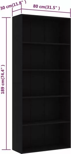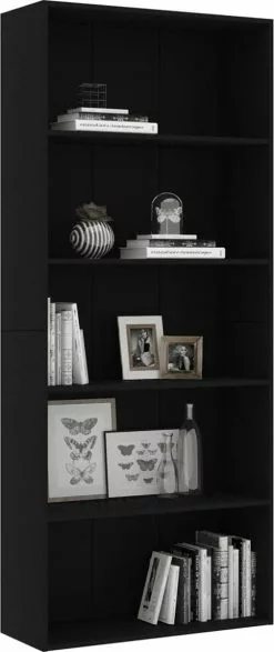 Deze kast is gemaakt van hoogwaardig spaanplaat waardoor hij stabiel en duurzaam is. Deze hoge boekenkast heeft vijf ruime schappen die voldoende ruimte bieden om je spullen, zoals verzamelobjecten, boeken, snuisterijen en fotolijstjes, op te bergen en weer te geven.