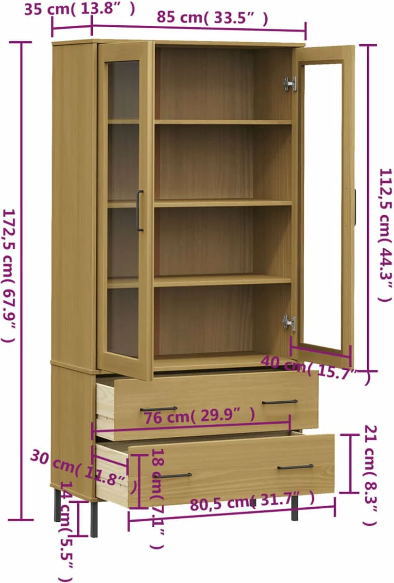 - Totale afmetingen: 85 x 35 x 172,5 cm (B x D x H)