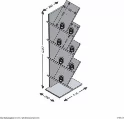 Vul de takken van de boom met je favoriete boeken om een opvallend decoratief schap te creëren. Dit staande schap is een modern wandrek met 4 en respectievelijk 5 vakken aan elke kant, die zijn gerangschikt in een speels, schuin patroon.