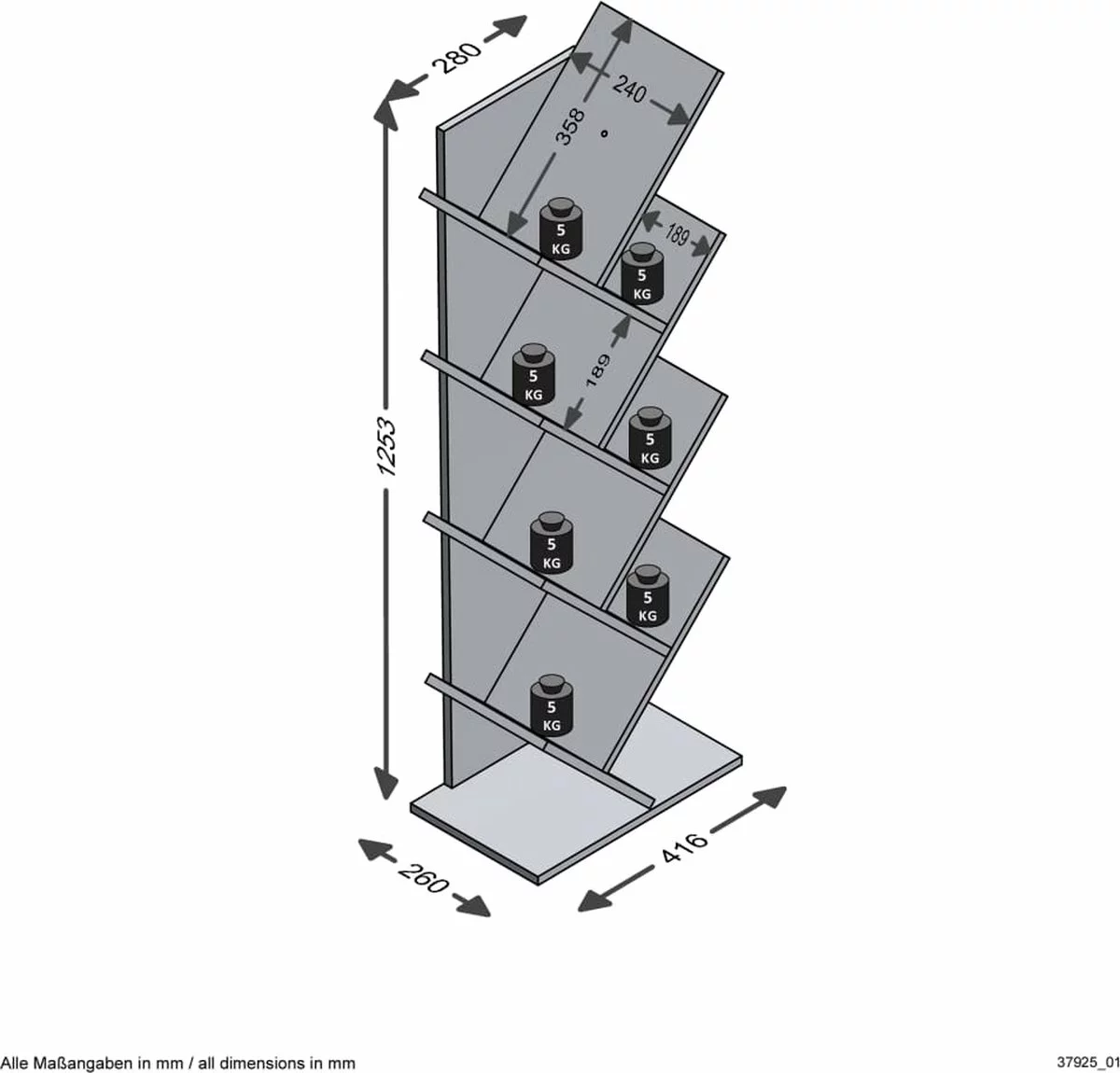 - Afmetingen: 41,6 x 26 x 125 cm (B x D x H)