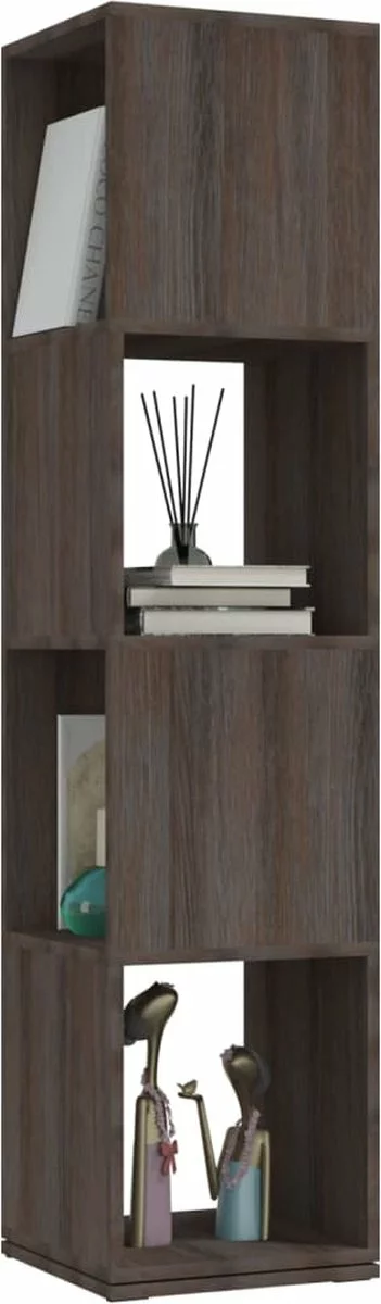 Deze staande kast is gemaakt van hoogwaardig spaanplaat en is buitengewoon duurzaam en stabiel. De draaikast is 360 graden draaibaar en neemt slechts een klein vloeroppervlak in beslag. De ruime vakken bieden plaats aan al je decoratieve objecten, planten, speelgoed, enz. Deze opbergkast is gemakkelijk schoon te maken met een vochtige doek.