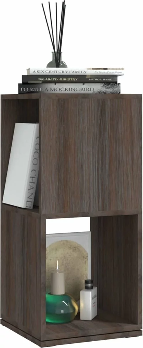 Deze staande kast is gemaakt van hoogwaardig spaanplaat en is buitengewoon duurzaam en stabiel. De draaikast is 360 graden draaibaar en neemt slechts een klein vloeroppervlak in beslag. De ruime vakken bieden plaats aan al je decoratieve objecten, planten, speelgoed, enz. Deze opbergkast is gemakkelijk schoon te maken met een vochtige doek.