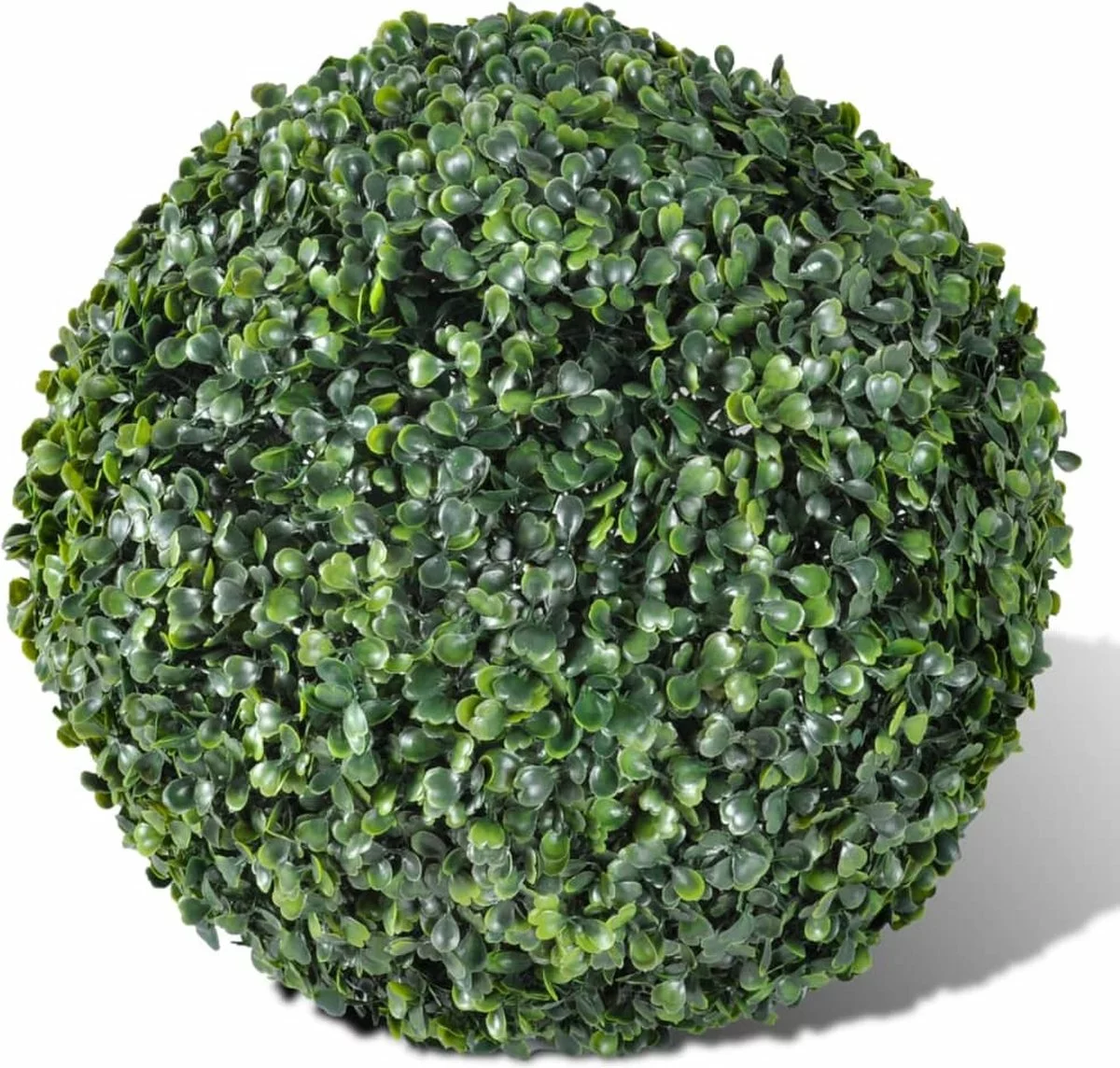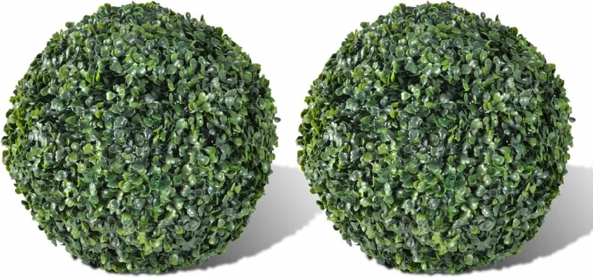 Deze set van 2 kunstbuxusbollen, elk met een diameter van 27 cm, is perfect voor zowel binnen- als buitengebruik. De bollen kunnen in potten of plantenbakken worden geplaatst of aan een ketting worden opgehangen. Je kunt de bollen ook versieren met kerstlichtjes om je interieur op te fleuren of je tuinlandschap te verbeteren.