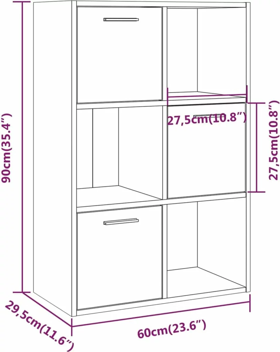 - Afmetingen: 60 x 29,5 x 90 cm (B x D x H)
