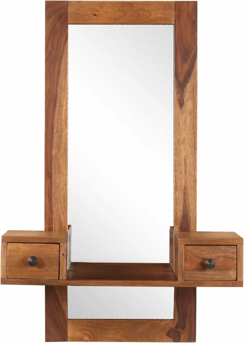 Dit product is gemaakt van massief sheeshamhout. Sheesham is een tropisch hardhout dat niet alleen bekend staat om zijn rijke nerven en ook wel palissander of rozenhout wordt genoemd. Deze decoratiespiegel is volledig met de hand gemaakt. De prachtige houtnerven maken elk meubel uniek en enigszins van elkaar verschillend. Elke stap van het proces wordt met de grootste zorg uitgevoerd, of het nu gaat om polijsten of lakken. De make-up-spiegel is eenvoudig te monteren.