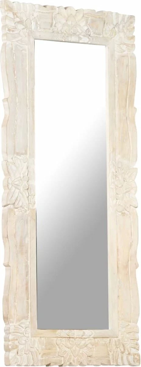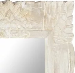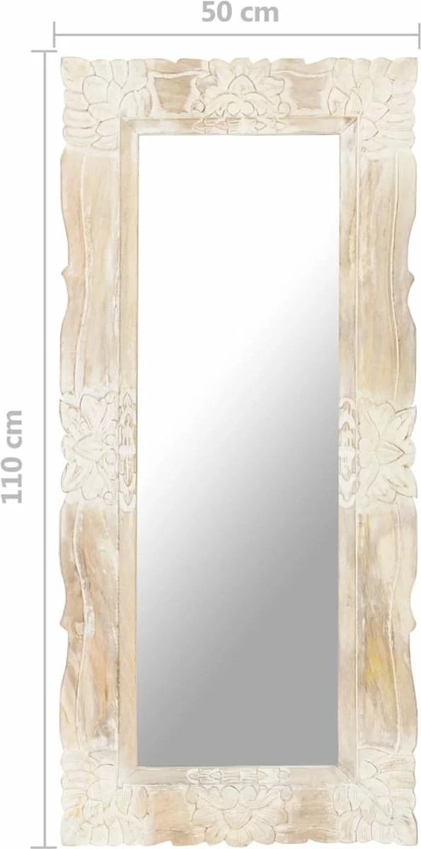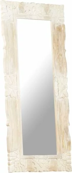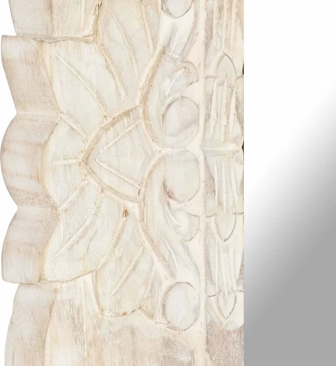 Massief mangohout is een tropisch hardhout. Het heeft de kracht om veel gewicht te dragen en is bestand tegen slijtage. Bovendien zorgen het voortreffelijke vakmanschap en de prachtige houtnerven ervoor dat elke houten spiegel net iets anders is dan de rest. Het met de hand gesneden patroon draagt bij aan de schoonheid.