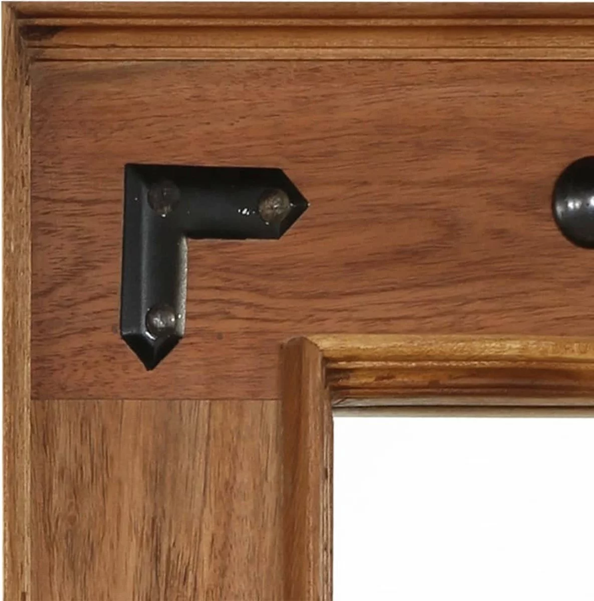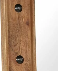 Het frame is gemaakt van massief, hoogwaardig acaciahout, een tropisch hardhout, dat weerbestendig en duurzaam is. Elke stap van het proces wordt met de grootste zorg uitgevoerd, of het nu polijsten, schilderen of lakken is. Het vakmanschap en de mooie houtnerven maken elk meubelstuk uniek en enigszins anders dan de rest. Onze spiegel heeft kleine versieringen op het oppervlak wat bijdraagt aan de schoonheid evenals aan de stevigheid. Het product is al gemonteerd; er is geen montage vereist.