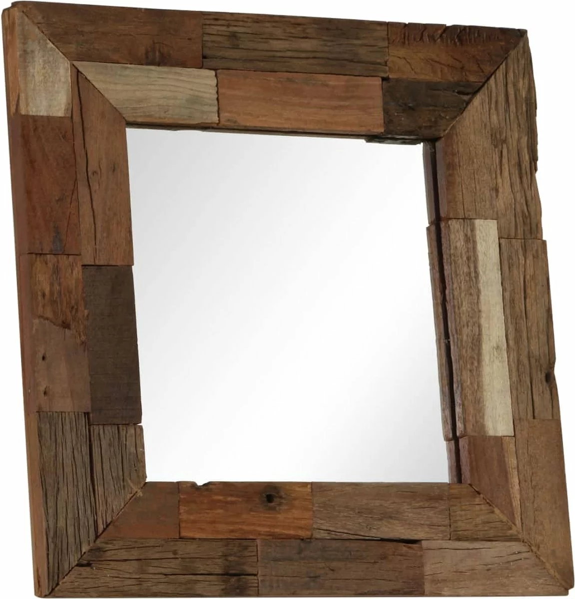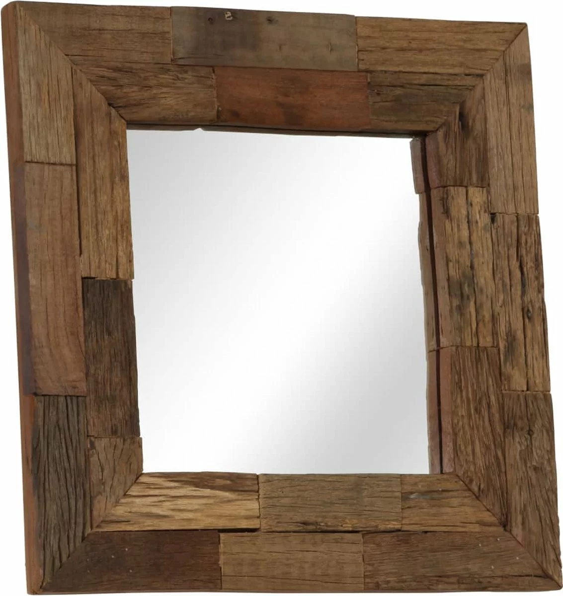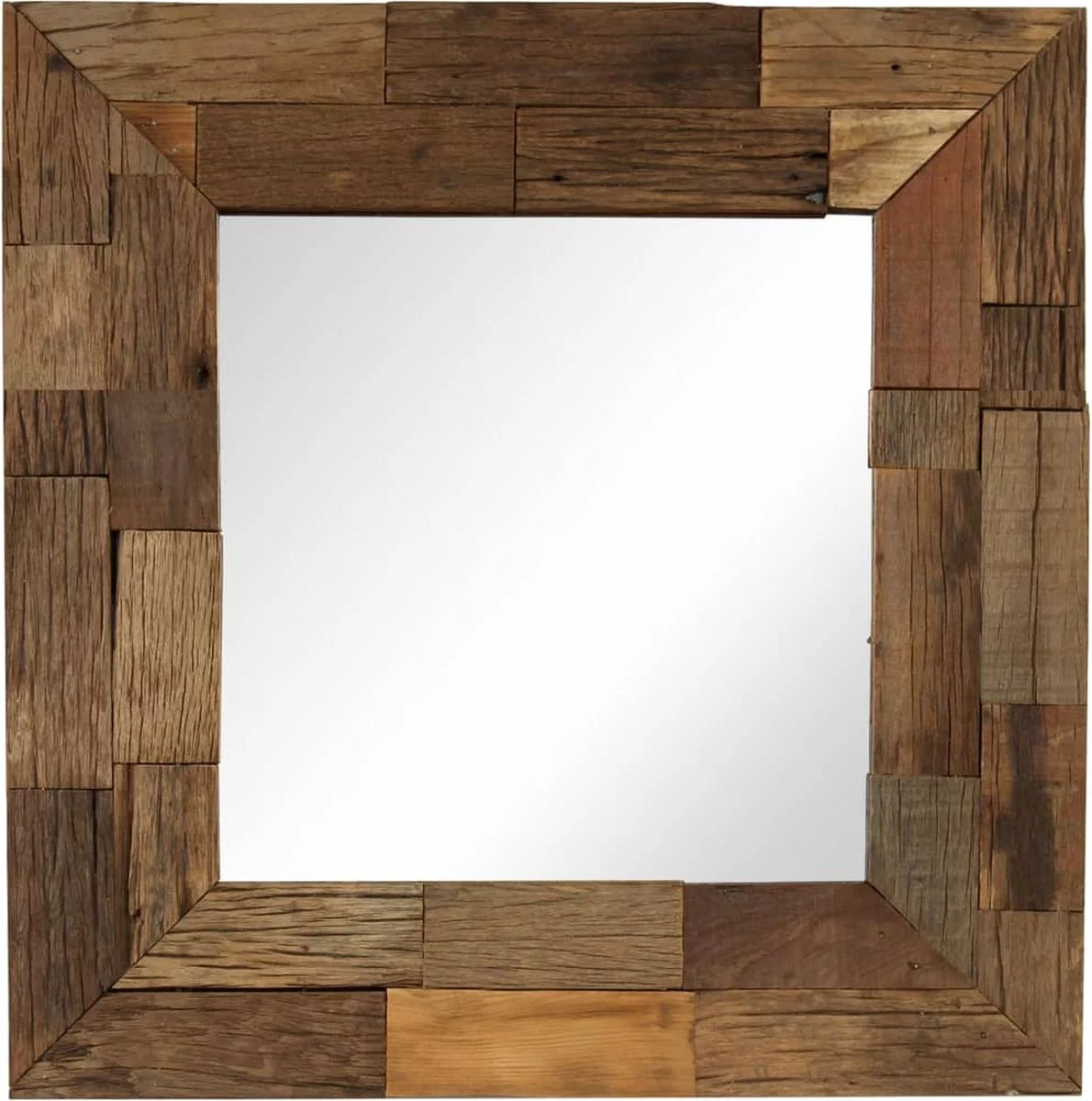 Deze houten spiegel heeft een massief acaciahouten frame, straalt een vintage charme uit en is met zijn unieke ontwerp een perfecte en aantrekkelijke decoratie voor je huis zijn. Hij kan in de gang of in de badkamer worden gebruikt.