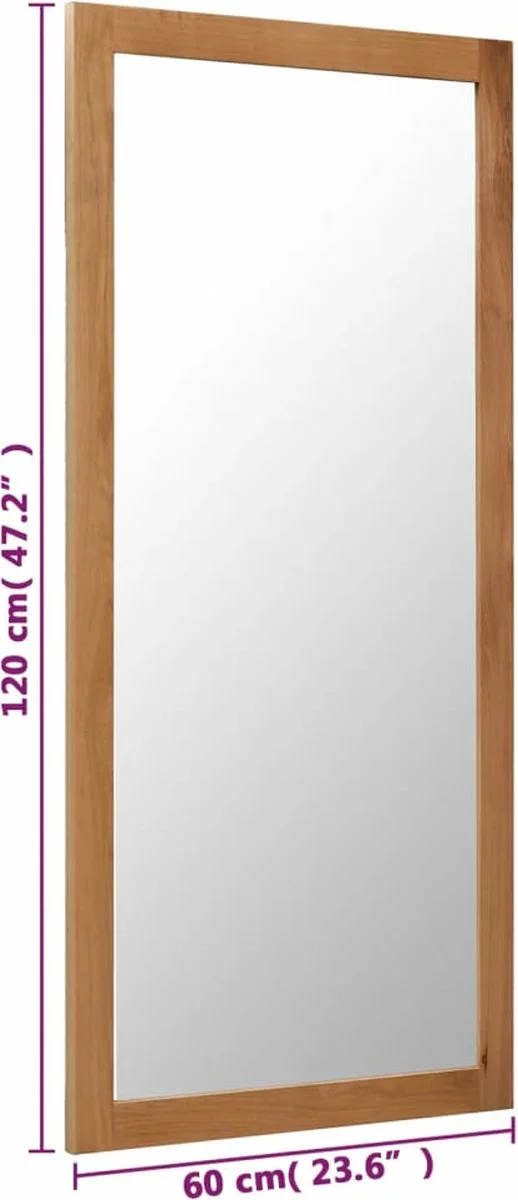 Het frame is gemaakt van stevig en massief eikenhout, waardoor deze spiegel een rustieke charme uitstraalt. Het hoogwaardige vakmanschap van het massieve eikenhout draagt bij aan de charme van deze prachtig vormgegeven spiegel. De spiegel kan worden gebruikt in de badkamer, slaapkamer of hal, en dient als een make-up-spiegel, een decoratiespiegel of een halspiegel. Daarnaast kan hij eenvoudig aan de muur worden gehangen dankzij de metalen bevestigingshardware aan de achterkant.