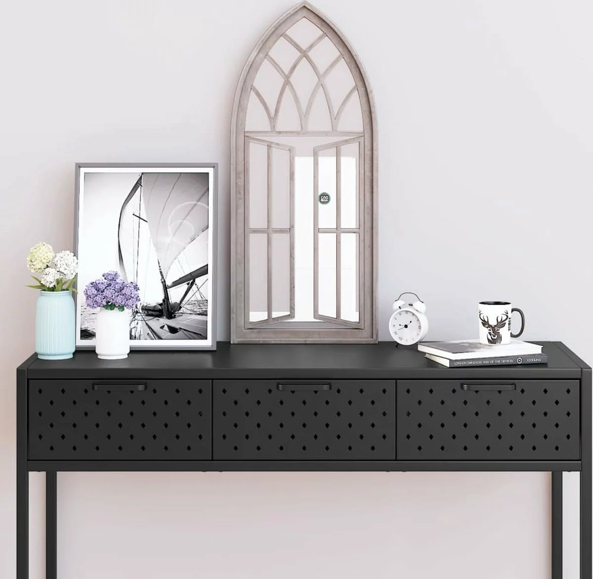 - Eenvoudig te monteren: dankzij het voorgeboorde gat aan de bovenkant is de decoratieve spiegel eenvoudig aan de muur te monteren.