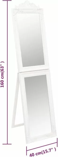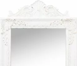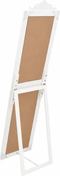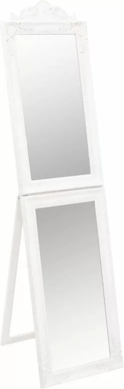 Deze vrijstaande passpiegel heeft een elegante barokuitstraling en is een geweldige, decoratieve toevoeging aan je gang, slaapkamer, kleedkamer, garderobe, enz.