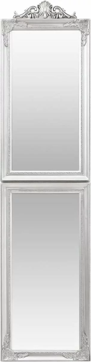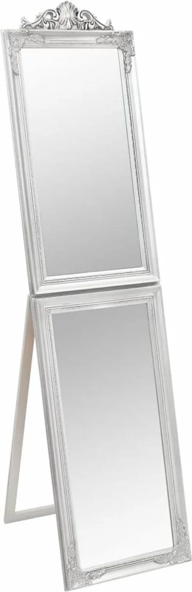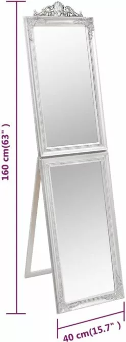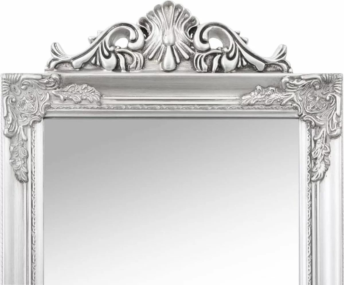 Deze vrijstaande passpiegel heeft een elegante barokuitstraling en is een geweldige, decoratieve toevoeging aan je gang, slaapkamer, kleedkamer, garderobe, enz.