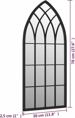 De buitenspiegel is gemaakt van duurzaam ijzer met roesteffect, wat hem een antieke uitstraling geeft. Hij kan worden gebruikt om een tuinelement te accentueren door het in de spiegel te reflecteren of om het licht naar een donkere hoek te buigen. Een spiegel in de tuin is een creatieve manier om de uitstraling te versterken en de tuin groter te laten lijken. Dankzij het voorgeboorde gat bovenaan kan de decoratieve spiegel eenvoudig aan de muur worden gemonteerd.