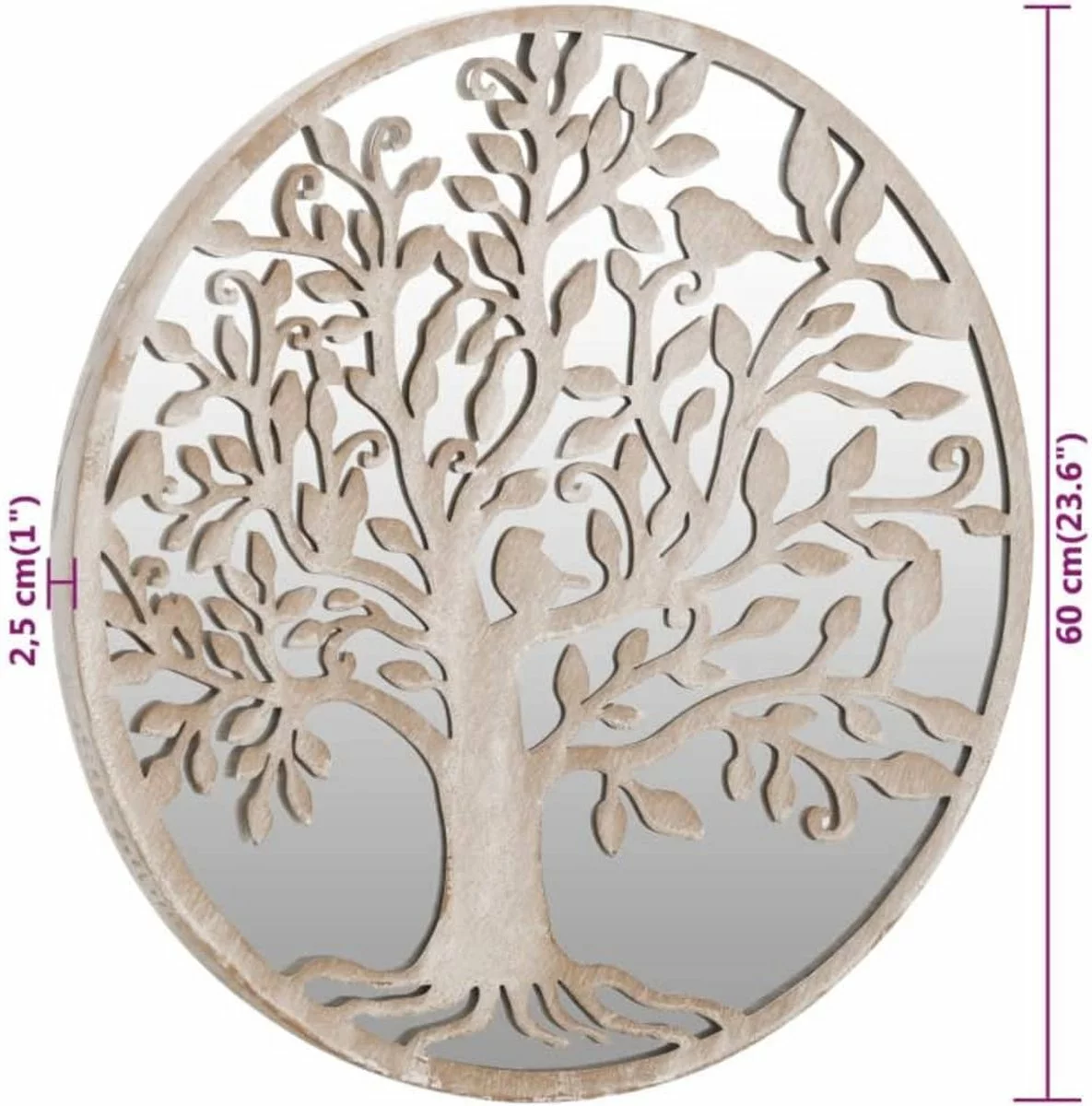 De spiegellijst is gemaakt van ijzer, waardoor hij duurzaam en stabiel is. Het decoratieve boomdesign maakt de spiegel geschikt voor buiten. Hij kan gebruikt worden om een tuinelement te accentueren door het in de spiegel te reflecteren of om het licht naar een donkere hoek te buigen. Een spiegel in je tuin is een creatieve manier om de uitstraling te versterken en de ruimte groter te laten lijken. Dankzij het voorgeboorde gat aan de bovenkant is de decoratieve spiegel eenvoudig aan de muur te monteren.