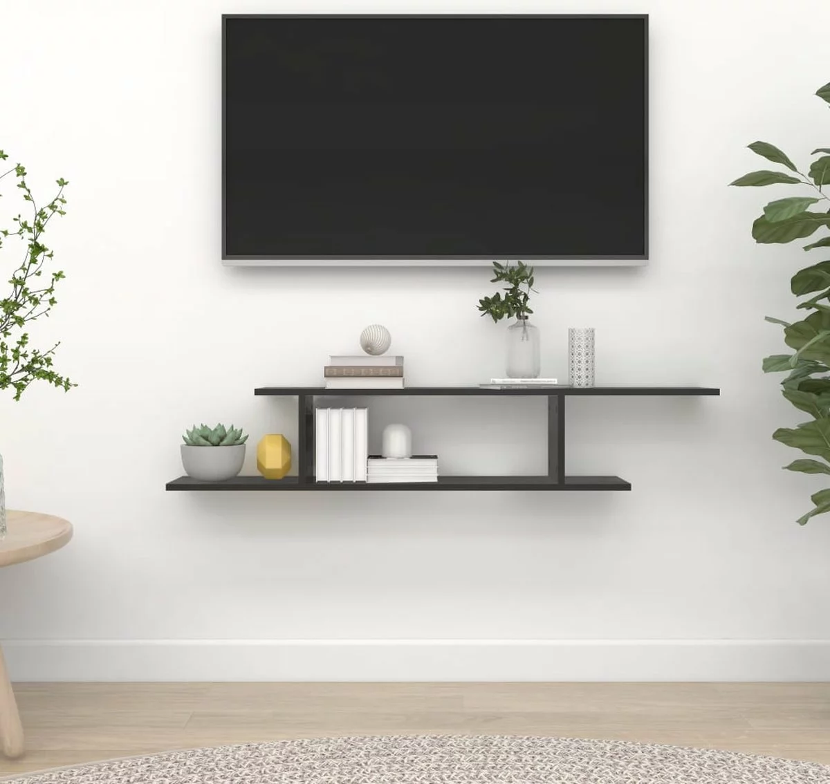 Dit trendy en moderne televisiemeubel voor aan de muur is de blikvanger van je huis.