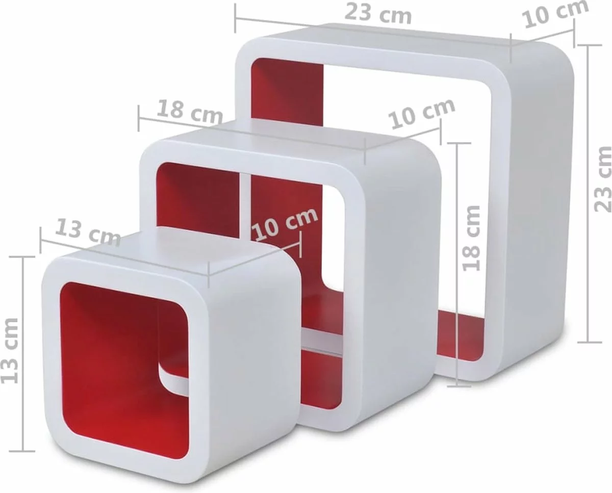 Deze wandkubussen hebben een onzichtbaar montagesysteem waardoor ze eenvoudig te installeren zijn en ze perfect zijn voor het plaatsen van prijzen, boeken, verzamelingen, ornamenten, enz. Deze wandplanken kunnen op de muur worden gemonteerd of op de grond worden gezet om een uniek opberg- en etaleer idee te vormen. Je kunt ze apart of samen monteren. Deze open wandplanken zullen bij elke omgeving passen en toveren een lege muur in een oogwenk om tot een karakteristieke plaats! Deze hangende wandplanken zijn gemaakt van hoogwaardig MDF met een matte afwerking.