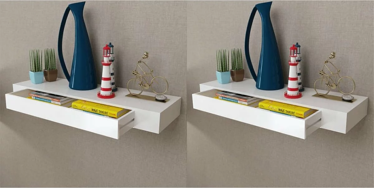 Deze wandplank heeft een onzichtbaar montagesysteem waardoor hij eenvoudig te installeren is en dient als de perfecte plek om spullen, zoals prijzen, boeken, verzamelobjecten en ornamenten, op te bergen. Hij heeft een lade voor kleine spullen zoals sleutels, dvd’s, notitieblokken, pennen en andere snuisterijen. Het schap past bij elk interieur en geeft een lege muur een prachtige functie! Deze hangplank is gemaakt van hoogwaardig MDF met een matte afwerking.