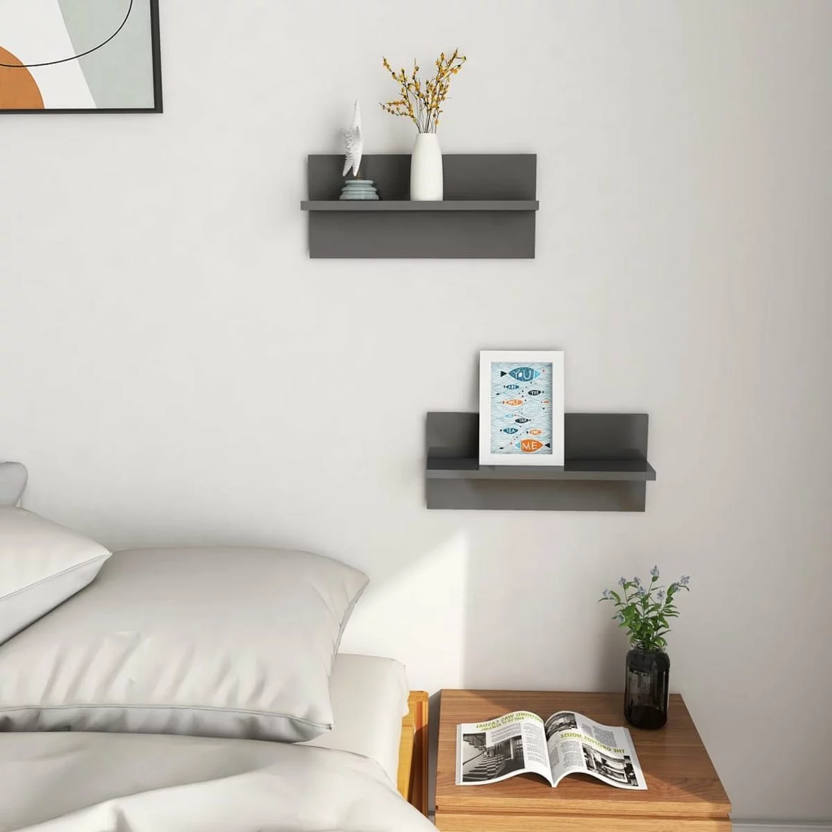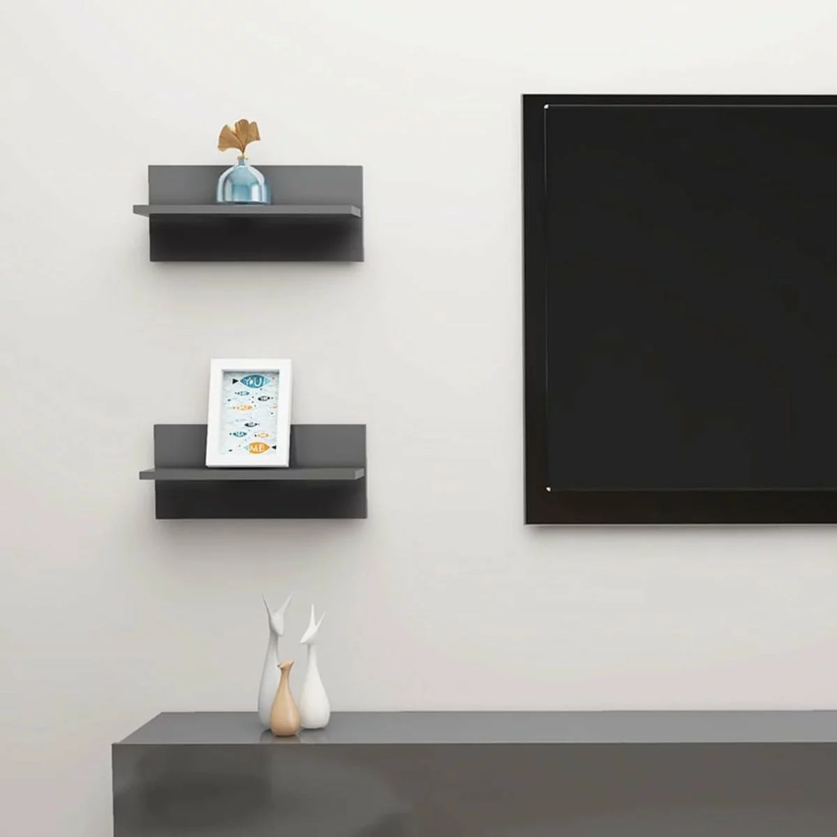 Het hangende wandschap is stevig en stabiel. Het is geschikt voor het plaatsen van dvd-spelers, boeken, tijdschriften en andere decoratieve spullen. Daarnaast neemt het aan de muur gemonteerde ontwerp weinig ruimte in beslag en maakt het kostbare vloerruimte vrij. De plank is gemakkelijk schoon te maken met een vochtige doek. Hij is eenvoudig te monteren met de inbegrepen montagematerialen.