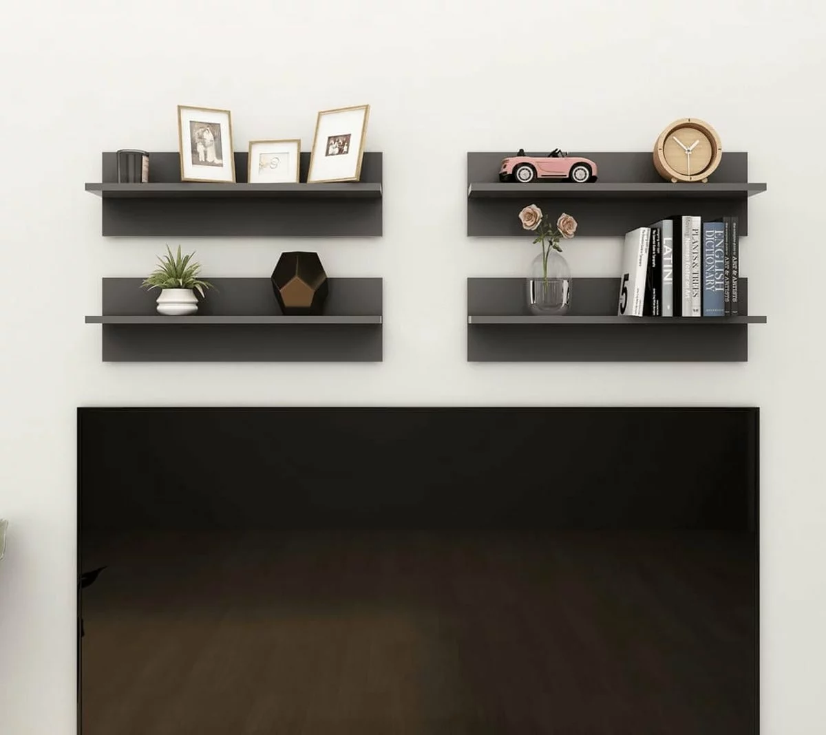 Deze hangende schappen zijn een ideale oplossing voor het opbergen en uitstallen van decoratieve voorwerpen, zoals potplanten, vazen en fotolijsten. De schappen zijn uitstekend geschikt voor de meeste decoraties en veranderen een lege muur in een designelement! Daarnaast zijn de schappen eenvoudig schoon te maken met een vochtige doek.