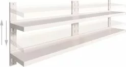 Ons 2-laags roestvrij stalen wandschappenset is niet alleen stijlvol, maar ook zeer functioneel. Het is een uitstekende keuze voor mensen die behoefte hebben aan extra opslagruimte in keukens. Het is een perfecte plek voor het bewaren van borden, schalen en andere keukenartikelen.
