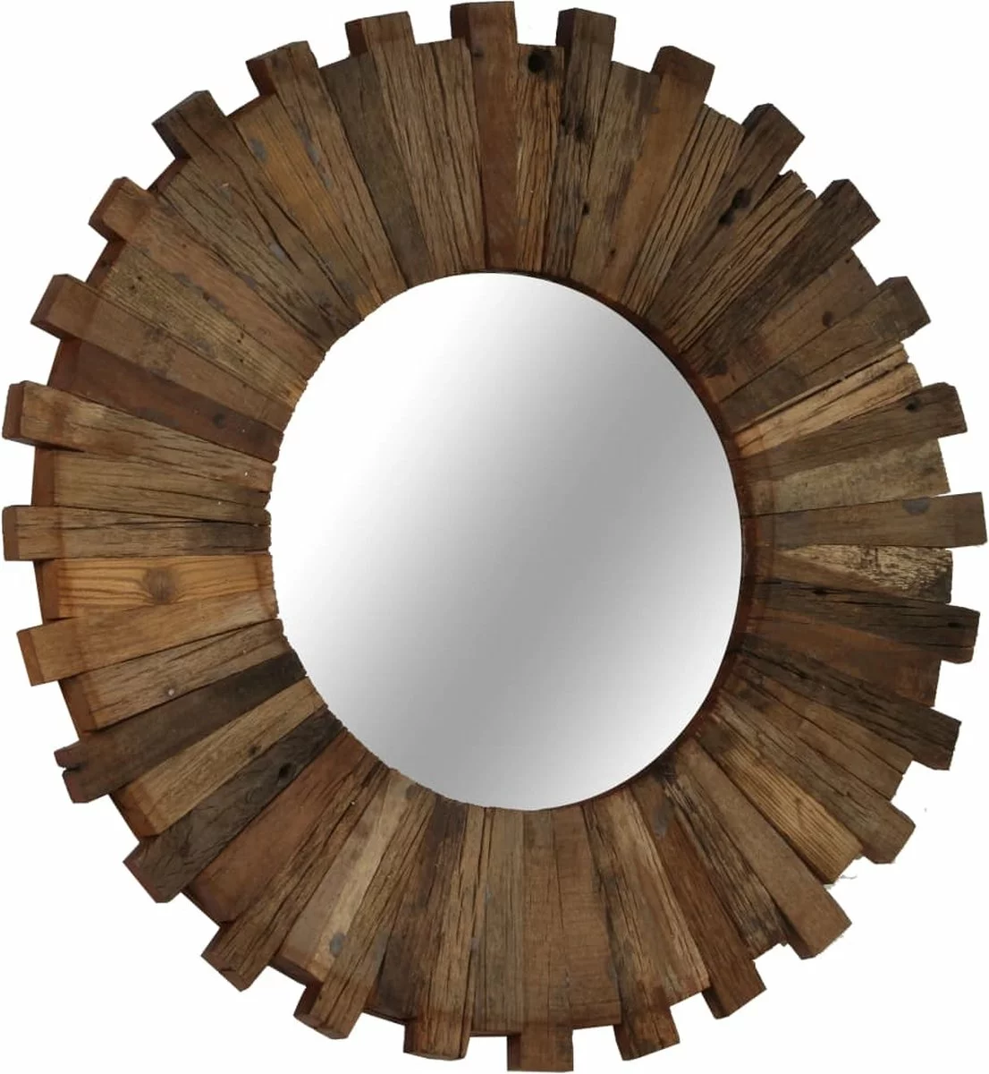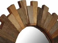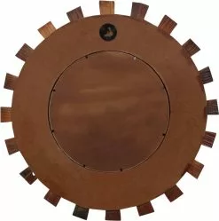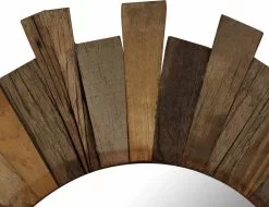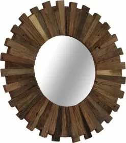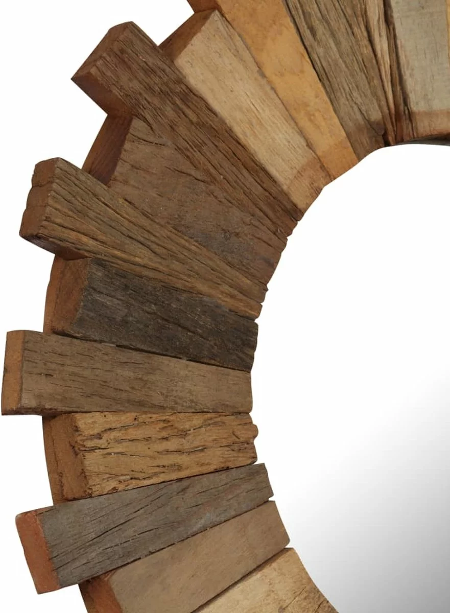 De spiegel is handgemaakt van massief gerecycled hout. Het ruwe uiterlijk van het hout en het vakmanschap dragen bij aan de spectaculaire retro stijl van de spiegel. Elke stap van het proces is met de beste zorg uitgevoerd, of het nu polijsten, verven of lakken is. De prachtige houtnerven maken elk product uniek en net iets anders dan de rest.