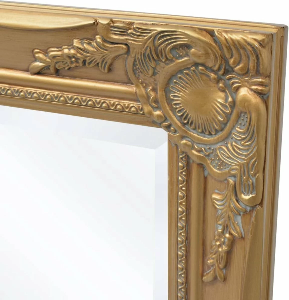 Deze spiegel met een antieke uitstraling heeft een stevig houten frame dat zorgvuldig is gemaakt met een decoratief Barok patroon. Daarnaast geeft de afgeschuinde rand deze spiegel een unieke look.