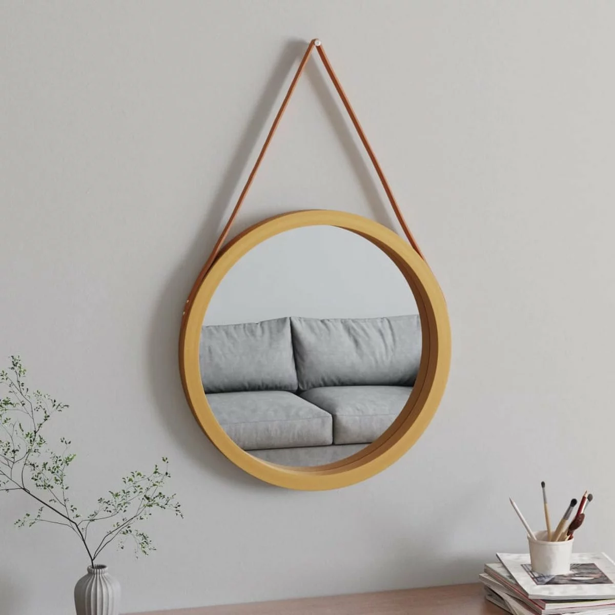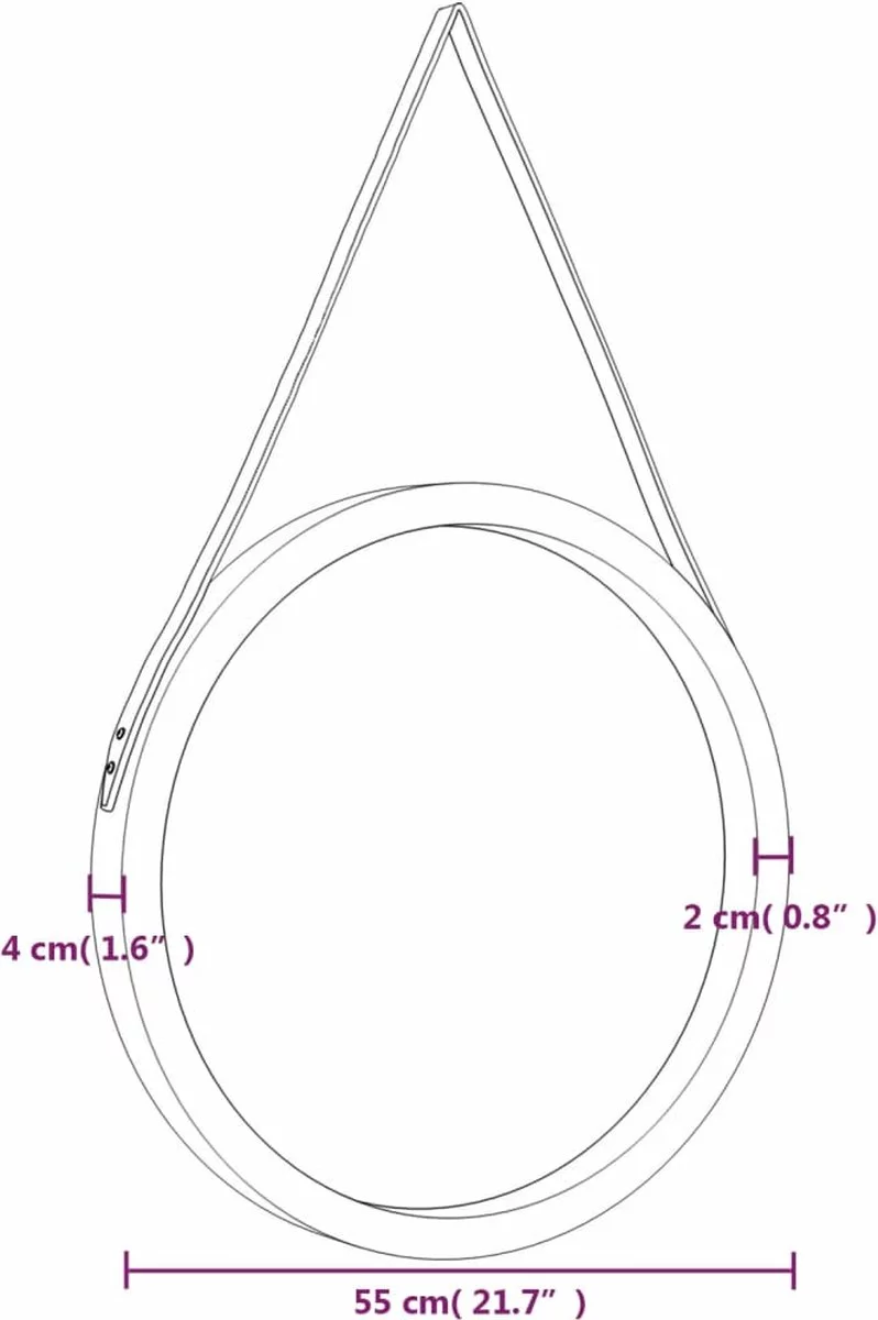 - Wandgemonteerd ontwerp: de spiegel met band is ontworpen om aan de muur te hangen, waardoor hij zeer geschikt is voor kamers met beperkte ruimte.