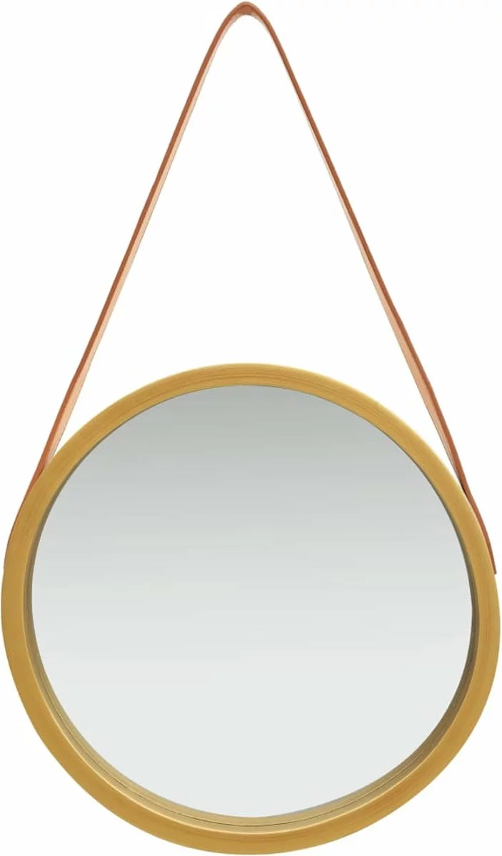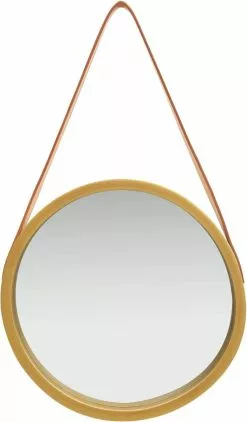 Deze trendy hangende spiegel geeft moderne interieurs een vintage vleugje. De grote, ronde spiegel is omlijst door duurzaam, natuurlijk paulowniahout en kan worden opgehangen aan de gladde, zacht aanvoelende kunstleren band. Dankzij de band kan je de spiegel op elke gewenste hoogte hangen, waardoor hij dus zeer flexibel is.
