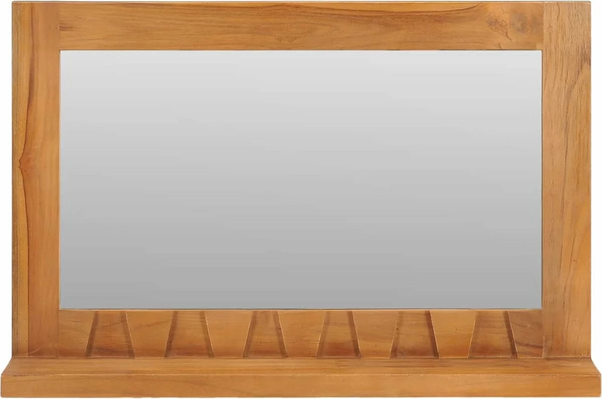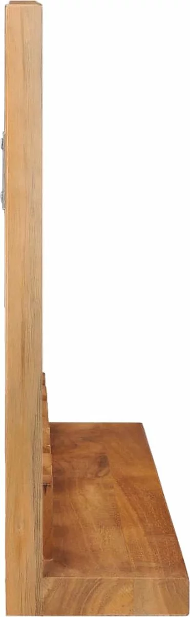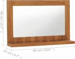 De badkamerspiegel is gemaakt van massief teakhout met een natuurlijke afwerking, waardoor hij vrij stabiel en gemakkelijk te onderhouden is. Deze houten spiegel heeft een open schap aan de voorkant waardoor hij niet alleen gebruikt kan worden om in de spiegel te kijken maar ook ruimte biedt voor het plaatsen van shampoos, cosmetica, tandpasta’s, enz. Daarnaast zijn er aan de achterkant montagegaten aangebracht zodat dit product stevig aan de muur kan worden gehangen.