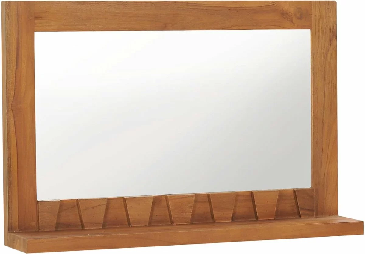 Deze wandspiegel met schap heeft een koloniale maar rustieke stijl en is perfect voor in je badkamer.
