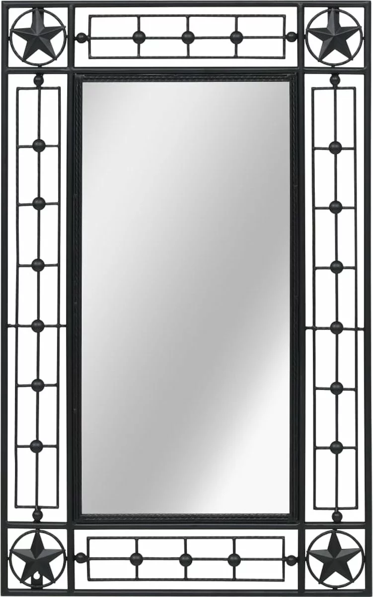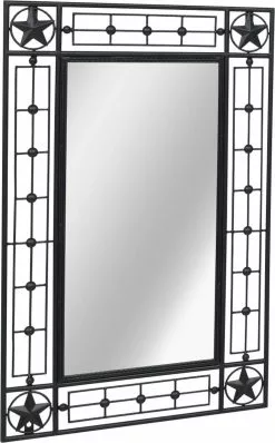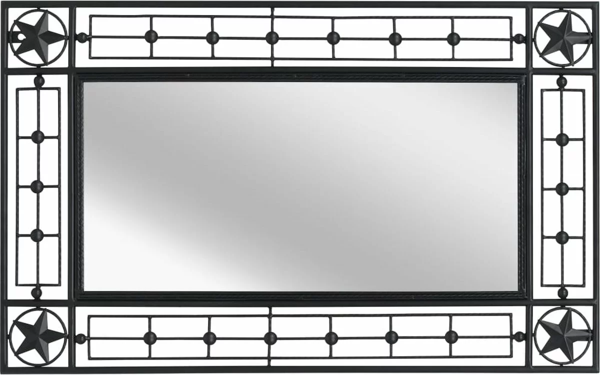 Deze wandspiegel is ontworpen met een gepoedercoat stalen frame dat is versierd met prachtige decoratieve details, zoals sterren, die je interieur een elegante uitstraling geven. Dankzij de voorgeboorde gaten in de drie hoeken kan de spiegel zowel verticaal als horizontaal aan de muur worden gemonteerd.