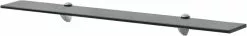 Dit glazen schap bestaat uit 2 grote klembeugels van zinklegering en gehard veiligheidsglas met een dikte van 8 mm. Het schap heeft een draagvermogen van 15 kg. De montagebenodigdheden zijn inbegrepen en de montage is eenvoudig.